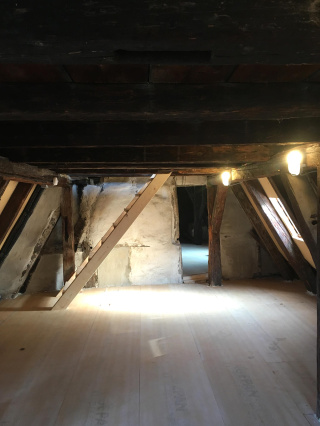 Das aus dem 15. Jahrhundert stammende, denkmalgeschützte Fachwerkgebäude befindet sich am Rande der historischen Altstadt von Bad Urach. Auf Grund diverser Renovierungen im Laufe der vergangenen Jahrhunderte war vom ursprünglichen Erscheinungsbild des mittelalterlichen Bauwerks nur wenig zu erahnen. Im Zuge der Sanierungsmaßnahmen wurde die Fachwerk - Giebelfassade entlang der Wilhelmstraße von den Putzschichten der 1960er Jahre befreit und in enger Zusammenarbeit mit der Denkmalschutzbehörde von Restauratoren untersucht und behutsam restauriert. Das schließlich gewählte Farbkonzept für die Fassade entspricht einer der, am Gebäude vorgefundenen historischen Farbfassungen. Das Gebäude mit zwei Wohnungen und einem Ladengeschäft wurde auch im Innenbereich grundlegend saniert und hierbei energetisch und brandschutztechnisch auf heutigen Standard gebracht.